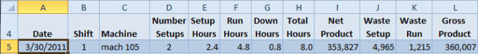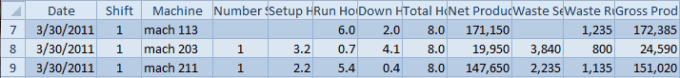 This particular data entry Table records a shift summary for each machine. Meaning there can be mistakes when the summary data is tabulated. One safeguard is to require that Setup, Run and Down Hours equal the Total Hours for the shift. That way errors will get highlighted instead of causing problems later when a report is run.