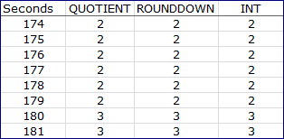 QUOTIENT, ROUNDDOWN and INT Functions in Excel