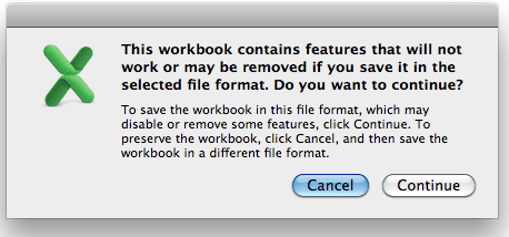 Which means I should save the file in the new XLSX format to keep my changes.